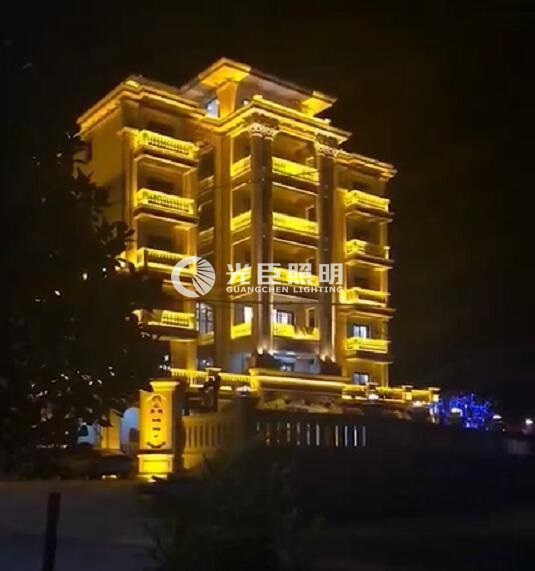 光臣照明,專注LED夜景亮化工程燈具。高檔別墅要做亮化?光臣照明LED金黃洗墻燈幫到您!