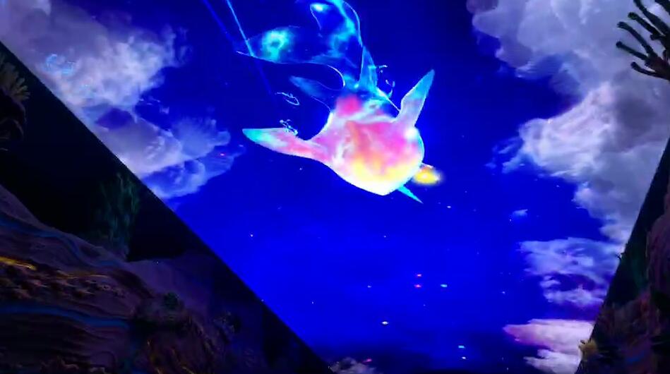 在海洋王國的入口處,有一個魚形狀的海洋大道,這是進入海洋王國的通道,海洋大道的頂部是一個巨大的天幕,輪換播放著水母,鯊魚,海草等海洋生物的圖~如夢如幻,超漂亮!