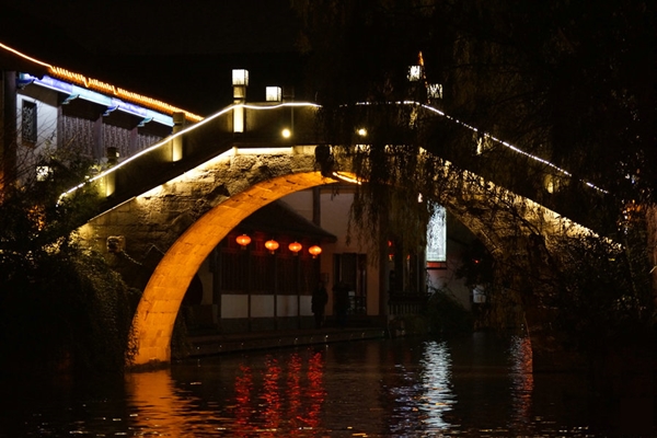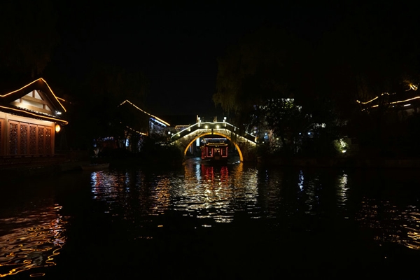 LED亮化讓水街的夜景更為誘人,臨水而立的亭臺(tái)樓閣,具有鹽城水鄉(xiāng)風(fēng)情和海鹽歷史文化風(fēng)貌的景區(qū)特色,在燈光的映襯下更具內(nèi)涵,樓閣、石橋、水、燈光融合成秦淮勝境的美景。