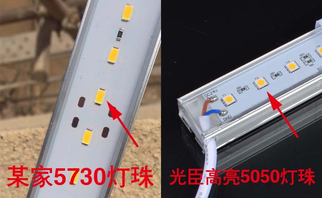 (1)光源的選用:多次與追求利潤更大化的朋友,請不要忽略品質(zhì)!出問題的時(shí)候得不償失!從圖片上看這根線條燈是用5730燈珠作為燈具光源,我們不是說5730燈珠不好,用在室內(nèi)燈具生產(chǎn)上它也是個(gè)好光源。光臣照明所生產(chǎn)的LED線條燈一律不采購5730燈珠作為光源,主要以5050晶元、三安、3030歐司朗、3535外露燈珠、科銳、普瑞等等戶外燈具專用光源。