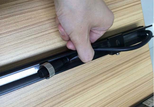 如圖片中的線條燈,單從安裝這一塊就已經(jīng)是違背它的設(shè)計原理,底部藏線卻無法把線藏到里面,像這類小線條燈寬度僅在18-20MM以內(nèi),如果需要做底部藏線的工藝,對接線頭的大小是不能超出10MM,因為對接后再藏線在底體內(nèi),安裝時是十分困難的。