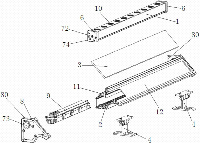 生產(chǎn)一支太陽能洗墻燈需要:蓄電池、燈體與燈體活動連接的太陽能光伏組件以及控制器;所述燈體內(nèi)部設(shè)置若干個(gè)LED燈珠;蓄電池、太陽能光伏組件、LED燈珠與控制器電性連接;
