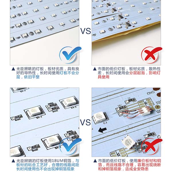 針對(duì)PCB板材的材質(zhì)來分析,PCB板也有分很多種質(zhì)量層次,市面上大部份廉價(jià)的線條燈選用的是二次料的PCB板材,這種板材在受熱后容易分層、銅箔太薄容易掉、粘合性不好銅箔層和PCB板層容易分開,更不用說線路穩(wěn)定性如何,板材都這樣還指望線路是穩(wěn)定的嗎?別開玩笑了,大家都很忙!大多數(shù)便宜的線條燈它沒有經(jīng)過合理的線路布局和檢驗(yàn)測(cè)試去測(cè)評(píng)它的可靠性和穩(wěn)定性。而正規(guī)的LED線條燈廠家所生產(chǎn)出來的產(chǎn)品肯定會(huì)做到這一點(diǎn)才能在市面上銷售。