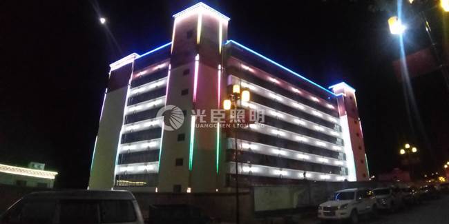 比如西藏地區(qū)樓房以白色紅邊為主,很少用金黃光色溫。近期項(xiàng)目是一個(gè)西藏地區(qū)的一個(gè)宿舍樓,白墻紅邊的墻身,所以在色溫選擇上用了白光及全彩。本次項(xiàng)目用了白光雙頭壁燈、白光洗墻燈以及全彩外控線條燈,完工亮燈效果符合設(shè)計(jì)圖紙,客戶驗(yàn)收完成。