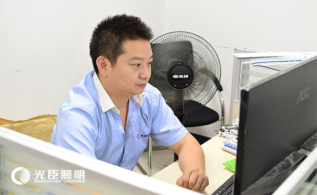 在公司里總能看見(jiàn)他忙碌的身影,一會(huì)來(lái)客戶(hù)咨詢(xún)、一會(huì)到測(cè)驗(yàn)室測(cè)試燈具、更多的是坐在電腦面前研發(fā)改良產(chǎn)品,夏工對(duì)產(chǎn)品熟悉是因?yàn)楣獬颊彰魉械臒艟叨际峭ㄟ^(guò)夏工去設(shè)計(jì)電路、檢驗(yàn)用料等,摸爬滾打20年,每一道生產(chǎn)工藝他都了如指掌。所以對(duì)于燈具的性能、調(diào)試等各方面技術(shù)問(wèn)題他都能迎刃而解。