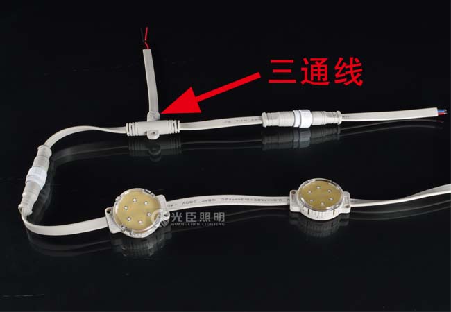 二、三通線串接安裝:每兩串LED像素燈串配有一條與之連接的三通線,延伸出來的三通線可與信號線、電源線相接。安裝極為方便。