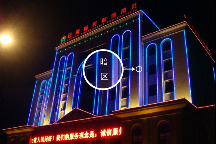 接下來再認(rèn)真的看一下以上建筑亮燈效果,細(xì)心的可以看出,燈與燈之間的安裝存在著空隙,這樣的空隙會(huì)讓建筑面的輪廓效果大大減分。