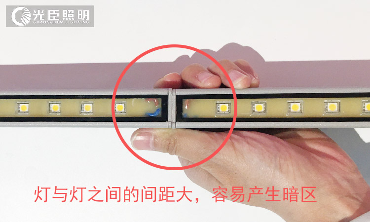 但有一點(diǎn)大家有要記住,LED線條燈并不是做到無縫對接就一定能達(dá)到無暗區(qū)效果,繼續(xù)看圖說話,怎么樣做到的無暗區(qū)效果,其實(shí)很簡單,就是燈與燈之間的距離縮短至點(diǎn)與點(diǎn)的距離,整體連貫就沒有黑色暗區(qū)。